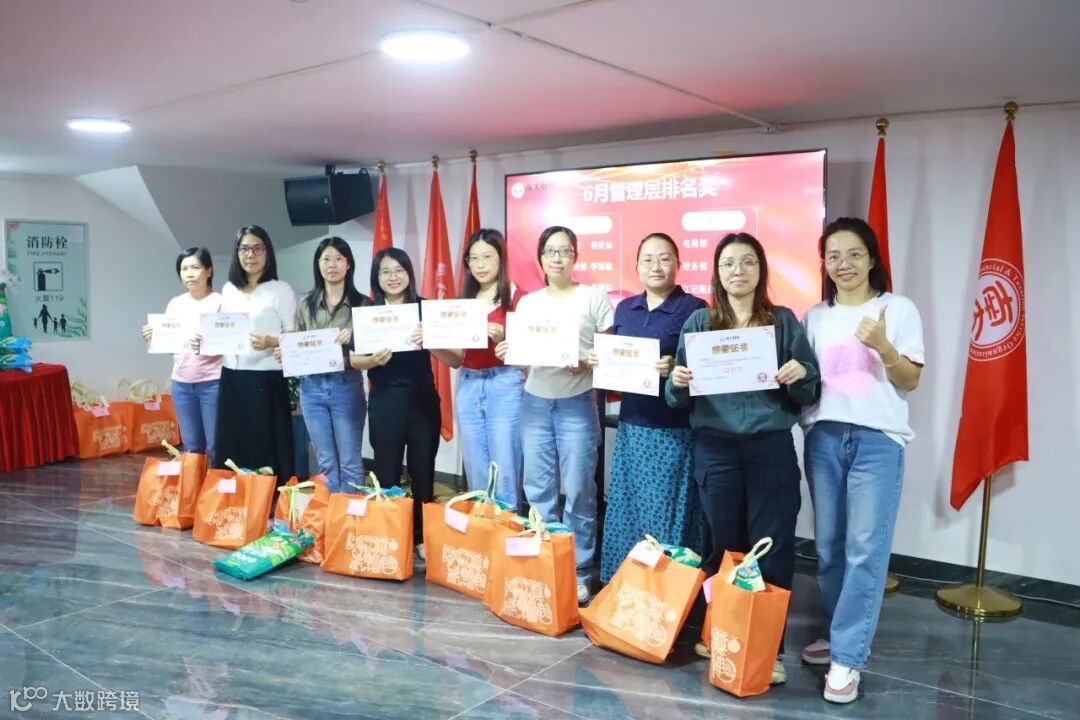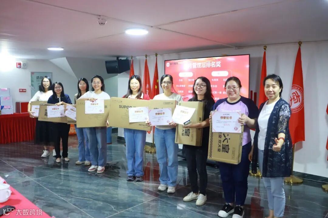 本期快乐会议对6月~10月的积分排名进行表彰。伙伴们的卓越表现和不懈努力得到了公司的认可。在热烈的掌声中,管理层为他们颁发了奖品——实用的大锅套装、零食大礼包、家用大礼包等等,以此表达对他们辛勤付出的肯定与感谢。