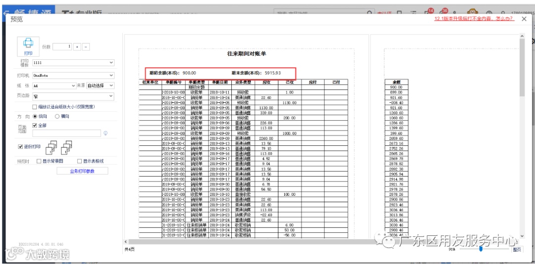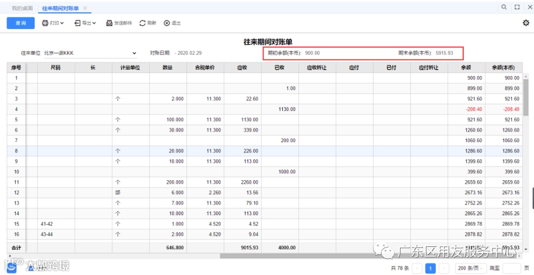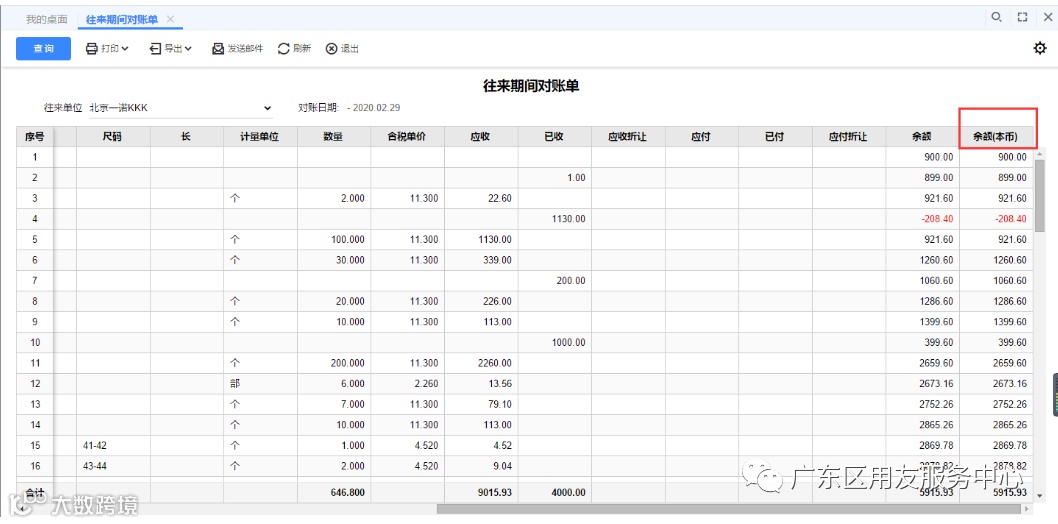 企业在跟客户、供应商对账时如何在表头查看某个客户、供应商的最终余额数据,并且打印出来呢?