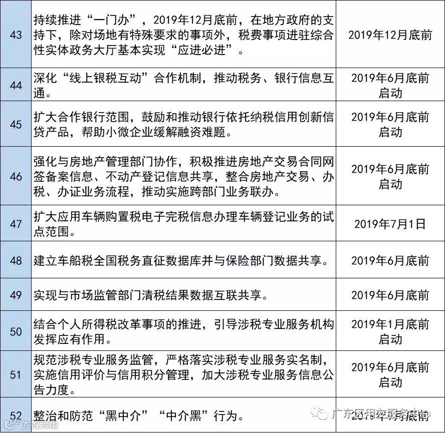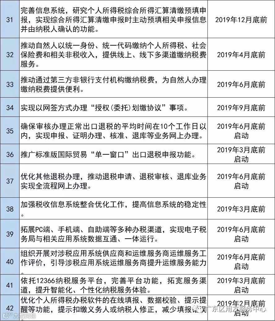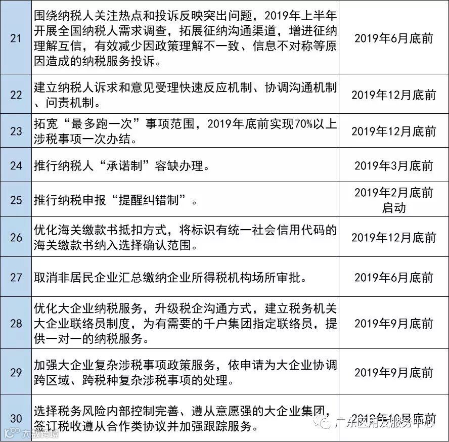 1、拓宽“最多跑一次”事项范围,年底前实现70%以上涉税事项一次办结。