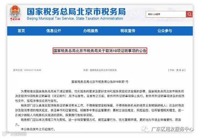 3、税务局发布关于取消10项证明事项的公告,2019年将推出精简报税资料等4类13项52条便民办税服务措施!
