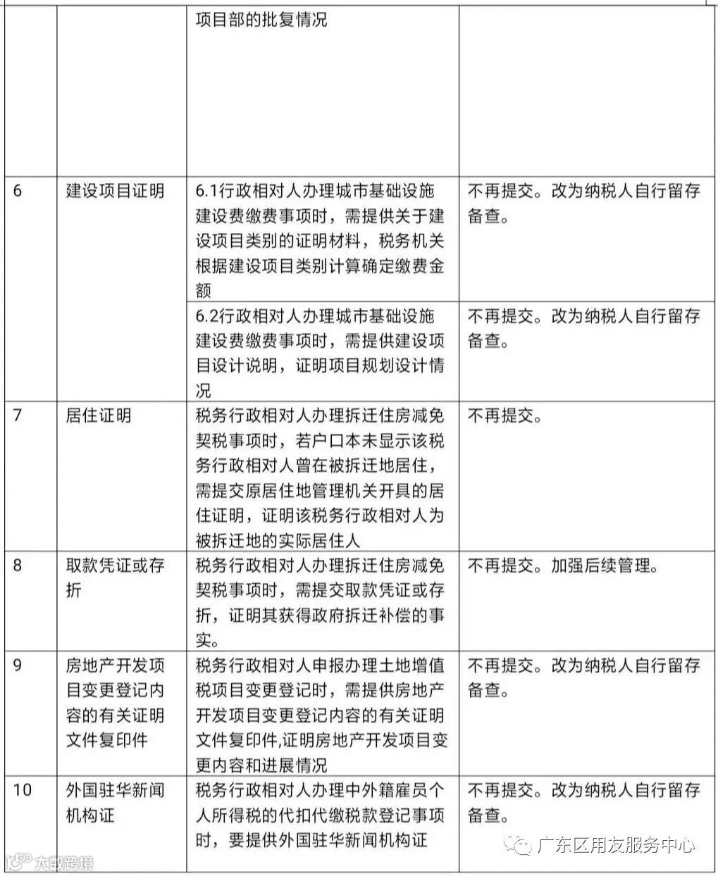 此次决定取消的10项税务证明事项,涉及24项具体办理事项。从证明材料来源看,需要专门为办理税费事项另行从第三方取得证明材料的共2项(服务地点在境外或购买方机构所在地在境外的证明、居住证明),需要提供法定证照等已有材料的共8项(税务登记证、身份证明、许可证件、批复文件、建设项目证明、取款凭证或存折、房地产开发项目变更登记内容的有关证明文件复印件、外国驻华新闻机构证);从涉及经济主体看,涉及民营经济的共7项(服务地点在境外或购买方机构所在地在境外的证明、税务登记证、许可证件、批复文件、建设项目证明、取款凭证或存折、房地产开发项目变更登记内容的有关证明文件复印件),涉及个人等其他主体的3项(身份证明、居住证明、外国驻华新闻机构证)。
