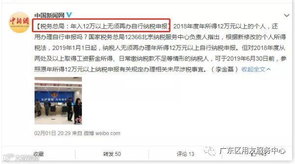 2月12日消息,国家税务总局12366北京纳税服务中心负责人表示,据新修改的个人所得税法,2019年1月1日起,纳税人无须再办理年所得12万元以上自行纳税申报。对于会计来说,工作量大大减少了。