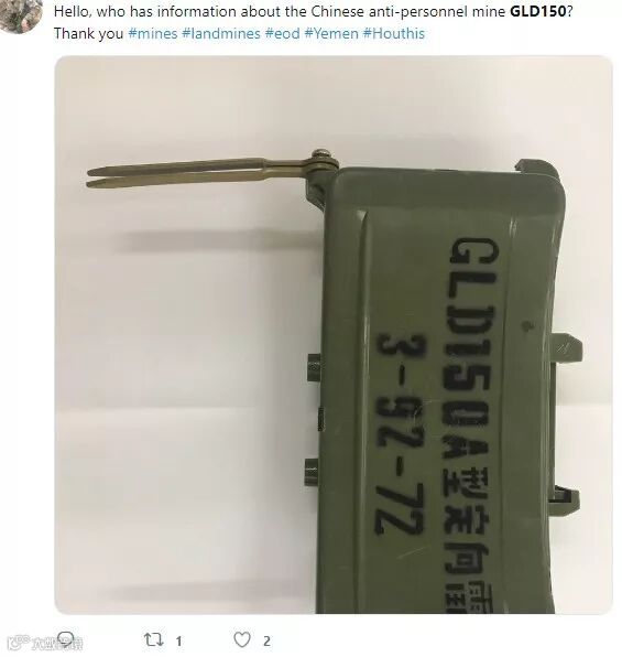 中国的56冲、40火箭筒和107火箭炮堪称中东非洲的三大神器,但近期在也门内战中,曝光了中国的又一低成本武器:GLD150A定向雷,据使用方称这种雷已经造成了150多人伤亡。