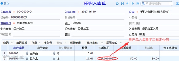 副产品核销:以委外订单行为核心对相关的主副产品的入库单进行核销,将副产品的成本从主产品的材料费中扣除