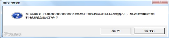 核销时,如果订单对应的出库单未核销数量和按用户选择的核销方式计算的标准用料之间有差异,系统会在核销时进行检查,并提示用户两者有差异,是否按实际用料进行核销,如果选择是则按出库单的未核销数量核销,如果选择否,则取消核销操作。