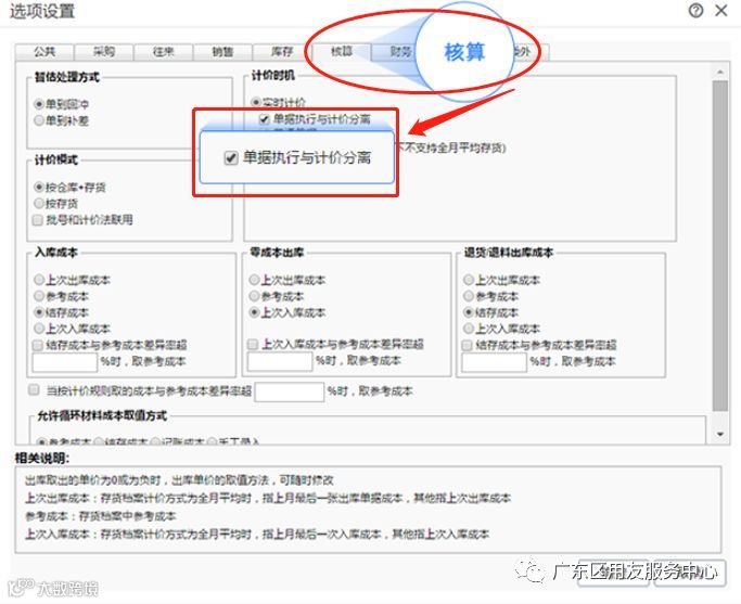 Step1:在选项设置-核算-实时计价下勾选【单据执行与计价分离】选项