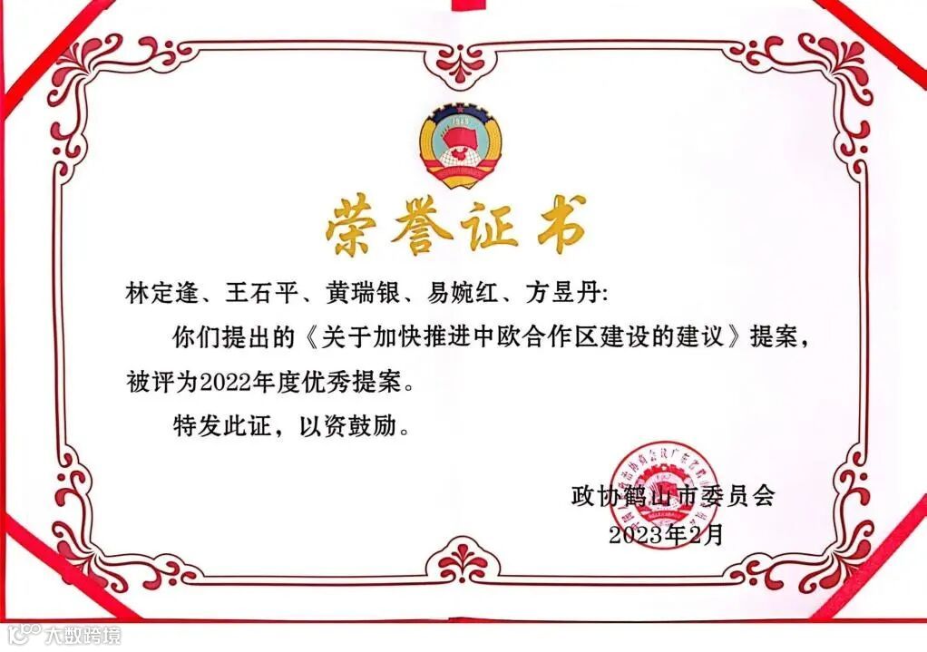 南大财税总经理林定逢主持、参与撰写的两项政协提案《关于加快推进中欧合作区建设的建议》、《加速人才引进、助力鹤山中欧中小企业合作区发展》被评为2022年度优秀提案。