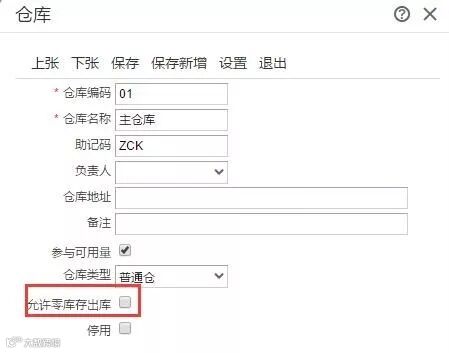 仓库档案未勾选“允许零出库出库”。这样即使选项勾选了“仓库允许零出库出库”,当出库单选择这个仓库时,还是不允许零出库的。如下图所示: