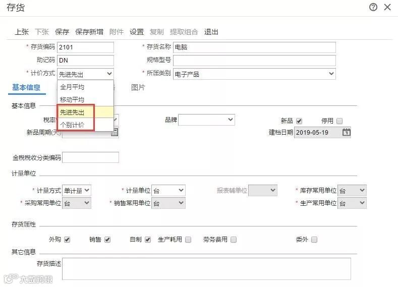 存货的计价方式是“先进先出”或“个别计价”时,即使勾选了“仓库允许零库存出库”也是不起作用的。因为这两种计价方法的存货出库时要有对应的入库才行的,所以这两种计价方法天生是不允许零出库的;如下图所示: