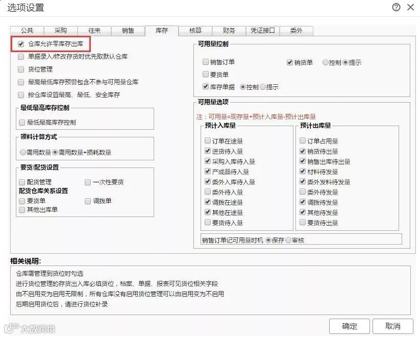 所以如果遇见了无法允许零库存出货的情况,可以先看看是否在“系统管理”—“选项设置”—“库存”页签已经设置了“仓库允许零库存出库”。如果设置无误,则可以进一步按照上述三种情况排查。