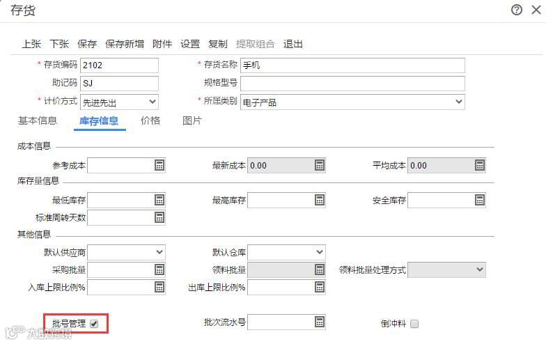 存货启用了批次后也是不允许零出库的,即使勾选了零出库选项也不起作用;如下图所示: