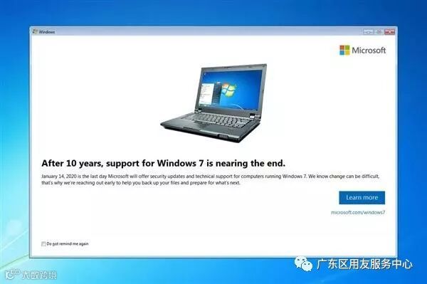 近日,微软向windows 7系统推送了一次特殊系统更新,用以提醒用户,微软即将正式结束对win7的系统支持。证实它将在Windows 7上显示服务支持终止通知,让每个用户都知道即将发生的变化,以及2020年使用无法接收更新的操作系统面临的风险。