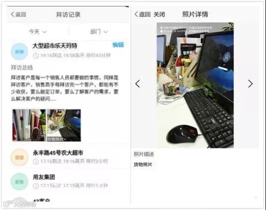 这个时候【客户管家】又派上用场了。在【客户管家】中,业务经理通过手机就能按时间或部门查看“拜访记录”。点击某一拜访记录,可查看拜访详情,了解各个业务员的工作情况后,业务经理对一些细节就能给予业务员指导、纠正和帮助,避免因为错过细节和关键时机,而错失订单。