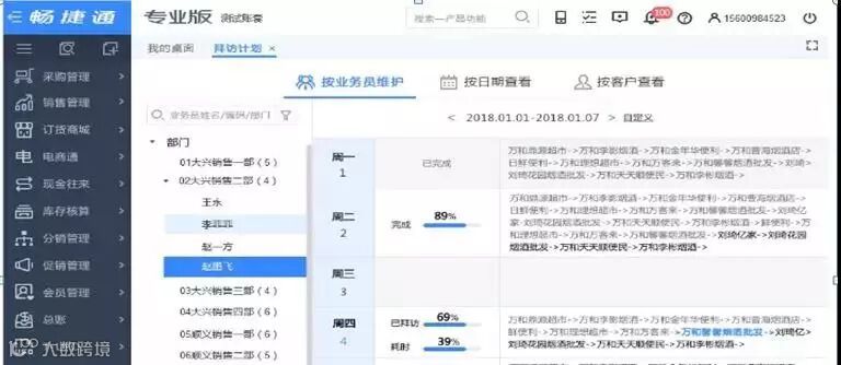 而作为管理者,也不需要再一个个去督促业务员,管理者在T+Cloud软件里就能看到每个业务员的拜访完成情况。
