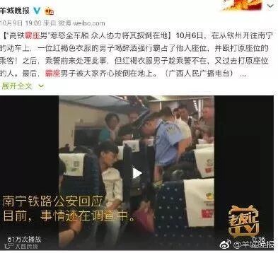 9月30日,广东省第十三届人大常委会通过的《广东省铁路安全管理条例》第34条提到,无有效车票、车票所记载身份信息与本人真实身份信息不符的,铁路运输企业有权拒绝其进站乘车。旅客应当按照车票载明的座位乘车,不得强占他人座位。