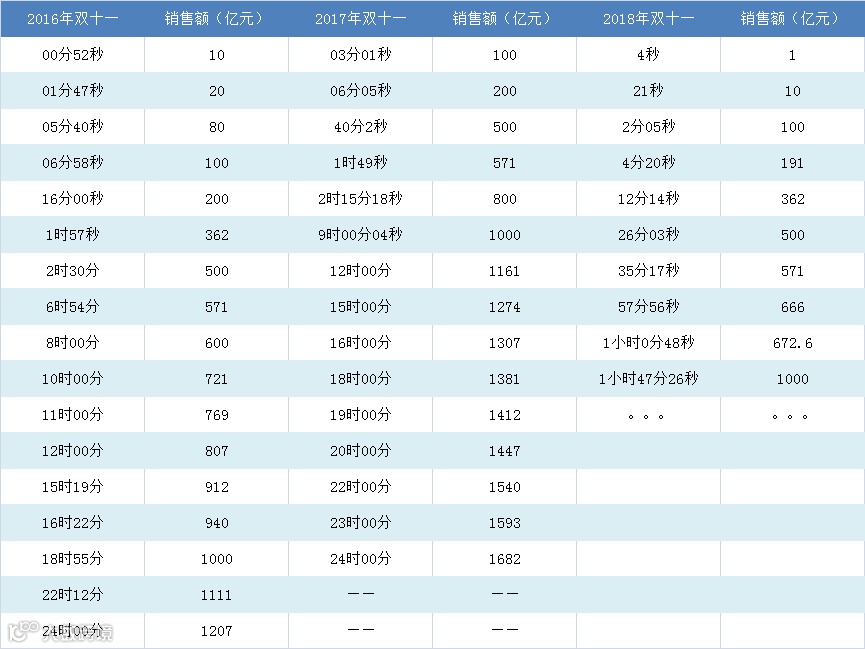 2018年的双11,1小时47分26秒,成交额突破1000亿元,