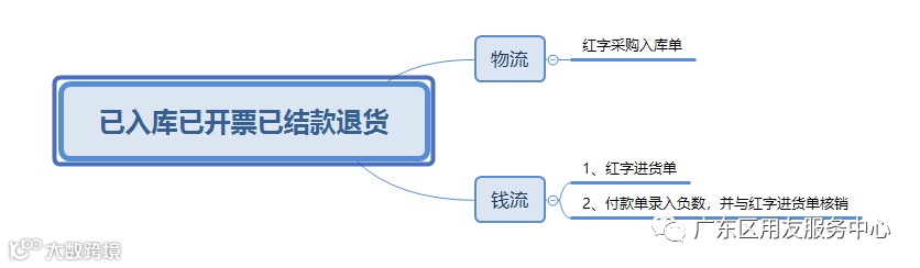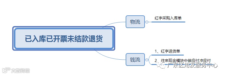 钱流方面——由于未结款,通过之前的进货单生成红字的进货单,并在往来现金模块中做应付冲应付,冲抵往来应付账款。