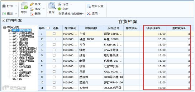 需要将存货档案中进项税率和销项税率批量调整为16。