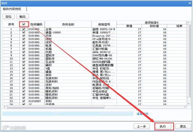 Step3:勾选存货范围,点击【执行】按钮,执行调整结果。