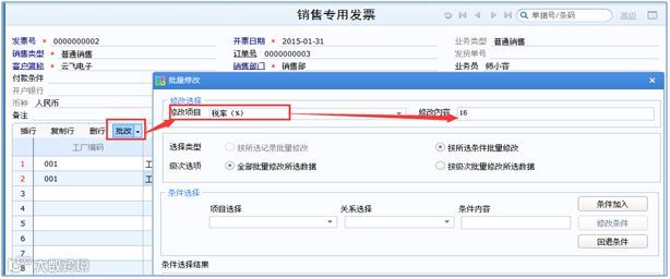 问题:发票开票在2018年5月1日之后,发票的开票税率是16%税率,但是之前录入的订单是17%税率,参照之前单据自动带17%税率,怎么批量调整?