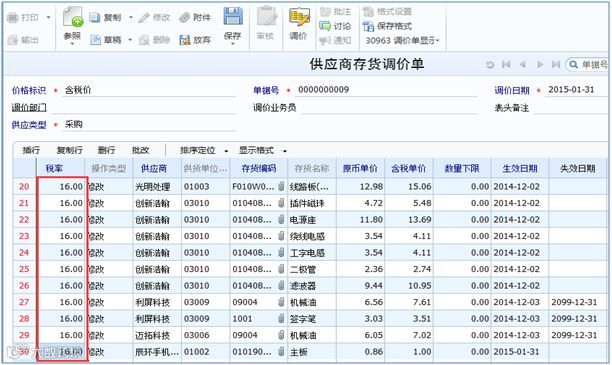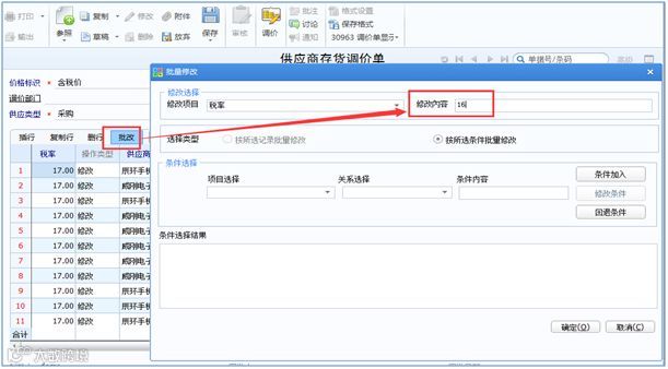 2)批量调整供应商存货价格表税率