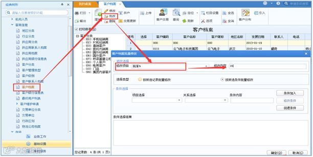 批量调整客户档案税率。