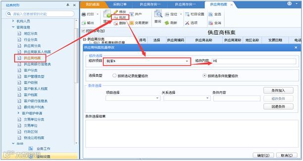 1)批量调整供应商档案税率