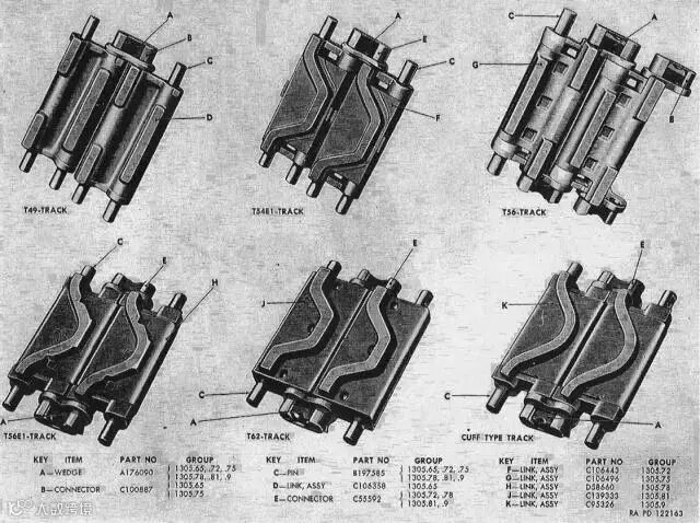 履带看起来非常简单,就是一条钢铁带子。但是如果仔细研究,履带的结构也是相当复杂的。如果从外形来区分,履带大致可以分为整体形、组合形和带状形三种形式。