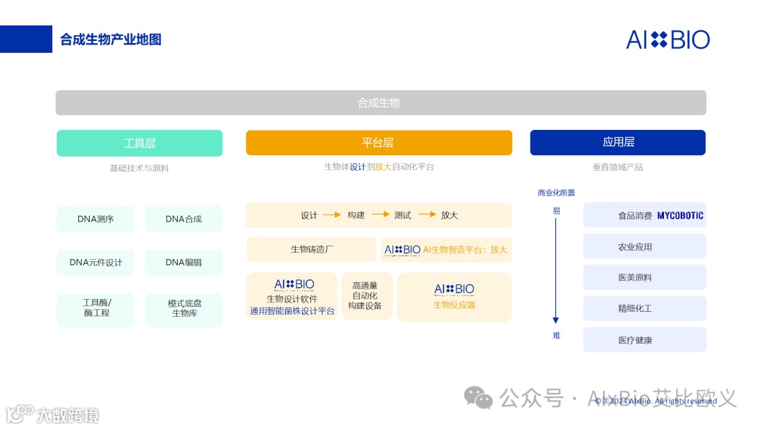 迈博蒂克作为艾比欧义全资子公司也是 AixBio艾比欧义合成生物智造平台 首个管线产品菌丝蛋白项目,主要基于生物信息和人工智能算法,提高碳源转化率,优化生产效率,大幅降低生产成本,缩短实现菌丝蛋白大规模量产时间,从而快速商业化。