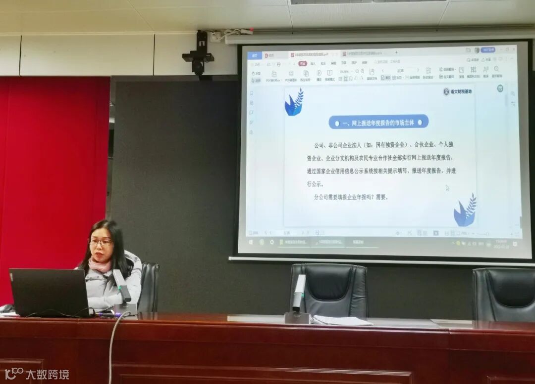 本次会议台山市市场监督管理局邀请广东南大会计师事务所注册会计师许婉贤女士主讲。许女士对企业年度报告和即时信息填报进行了讲解,并通过实际事例对填报过程中,企业经常会出现的疑问和容易出错的情况以及相关填报注意事项进行分析指导。