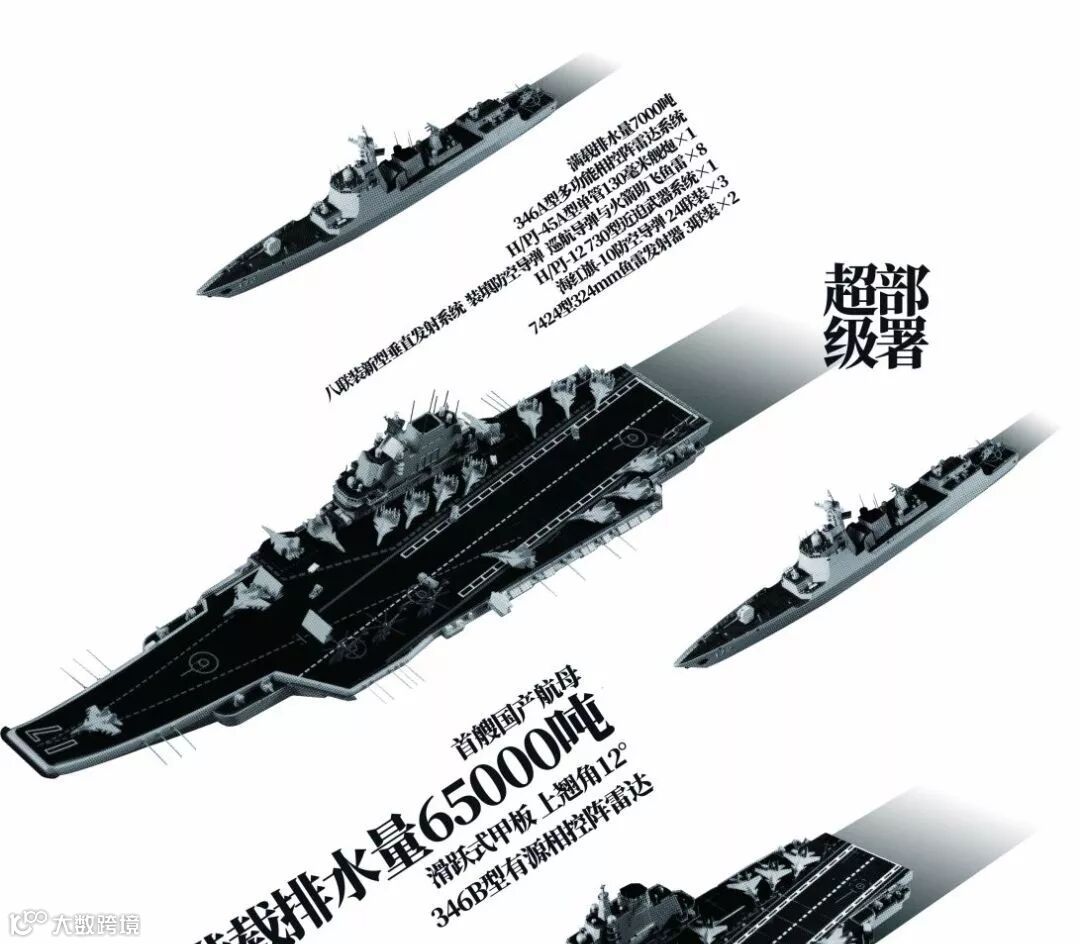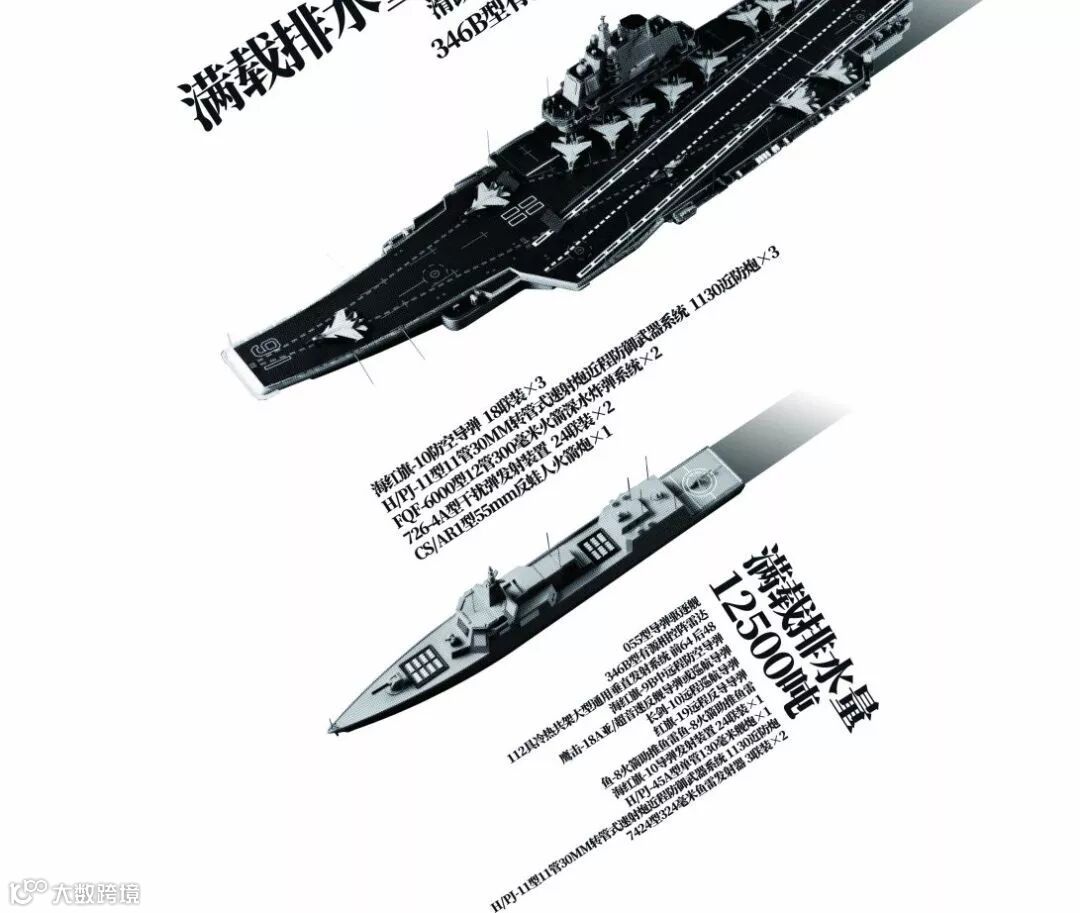 ▲下部为舷号16号的辽宁舰与“万吨大驱”055!
