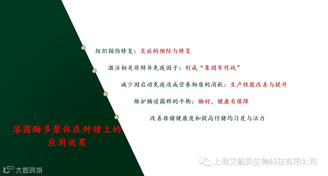 艾魁英特聘顾问沈水宝教授参与此次论坛。沈水宝教授任职广西大学动物科学技术学院副教授、广西饲料工业协会会长。10月13日下午,沈教授就《溶菌酶多聚体的技术创新及其在养猪价值链中的应用》发表报告演说。