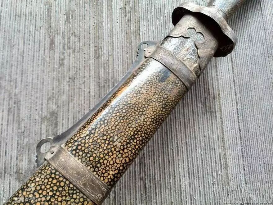 ▲清代使用鲨鱼皮制作的刀鞘、刀柄