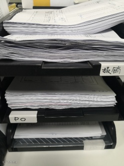 我们在新工位上为日常工作分区并做定位标识, 同事能最快速度取得所需之物,比如报销单区域, PO单据区域等;文档室内, 每个文件夹编号按公司、年度、和业务分类有序管理;