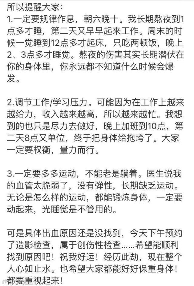 而留下的人们,希望我们在努力奋斗的同时,也不要忘记自己的身体健康。
