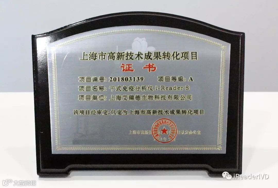 近期,艾瑞德i-Reader S 干式免疫分析仪通过上海市高新技术成果转化项目认定!