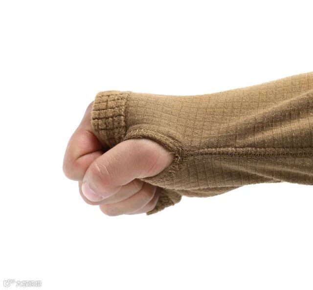 上衣袖子前端各设一个拇指孔,可较大限度地保护手部以达到最佳的保暖,功效袖口半指套设计给肢体末梢提供最大限度地保护。