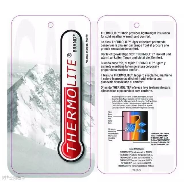 INVISTA® THERMOLITE是美国英威达公司的专利高科技保暖系列,是仿造北极熊的绒毛生产出的一种中空纤维。每根纤维都含有更多空气,形成一道空气保护层,既可防止冷空气进入,又能排出湿气。使穿着者的身体保持温暖、干爽、舒适、轻盈。过水后蓬松度还原极高!