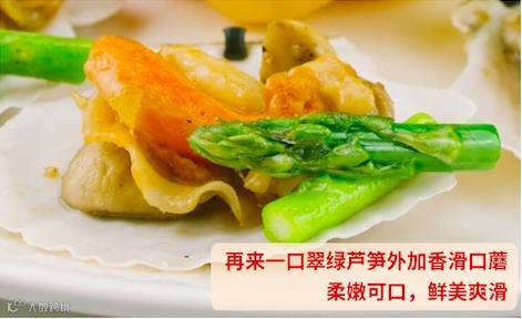 源自海底银行的野生鲜美扇贝,历经四年的缓慢生长。烹煮时,将9-10cm的虾夷扇贝煎至黄金色,搭配鲜嫩青脆的芦笋和细腻软滑的口蘑,让您感受来自北纬39度无与伦比的鲜美。