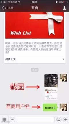 2、将分享截图回复给小吾(吾商公众号),并留言吾商网的用户名,