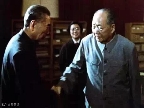 毛与周最后握手告别。当晚住进了305医院。(1974年5月29日)半个世纪的握手。