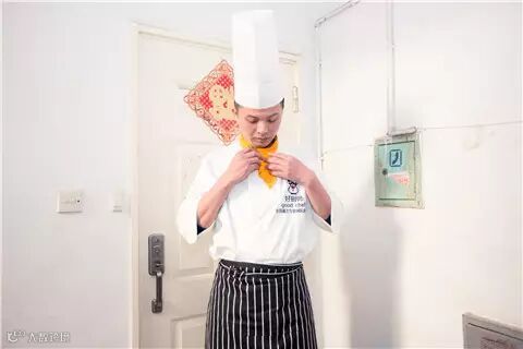 叩门前,张师傅一丝不苟的检查了自己的全身装备,厨师帽、厨师服、围裙、领巾、鞋套。OK,都检查好了,妥妥的。