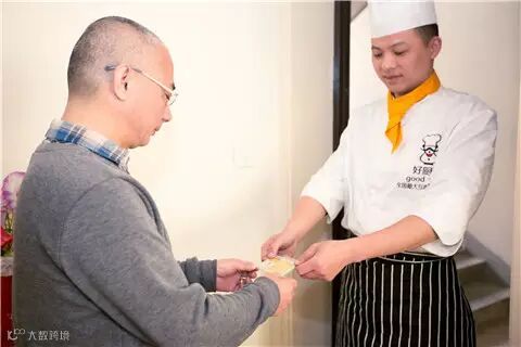 上完菜后,张师傅给裴先生一家人分发“好厨师”特别定制的湿巾,真是好贴心。