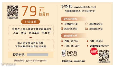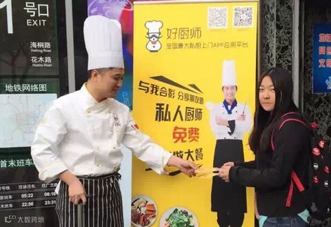 即日起,在上海各大神秘地铁站口将出现一位神秘大厨,与他合影留念并分享到朋友圈,就能拿到一张“好厨师”79元现金券,凭劵将免费体验一次四菜一汤上门服务。