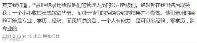 其实之前我也和大部分网友一样,因为她的丑而嘲笑她。可想到她能签约凤凰新闻客户端,一定有她的能力所在。于是去她的微博看了她写的东西。得出了下面的判断: