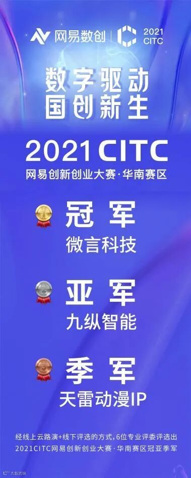 10月22日,由网易数创主办,厦门网易数字产业中心承办的2021CITC网易创新创业大赛·华南赛区总决赛顺利开幕,活动采用线上路演线下评选方式,通过网络直播平台进行了全网直播。