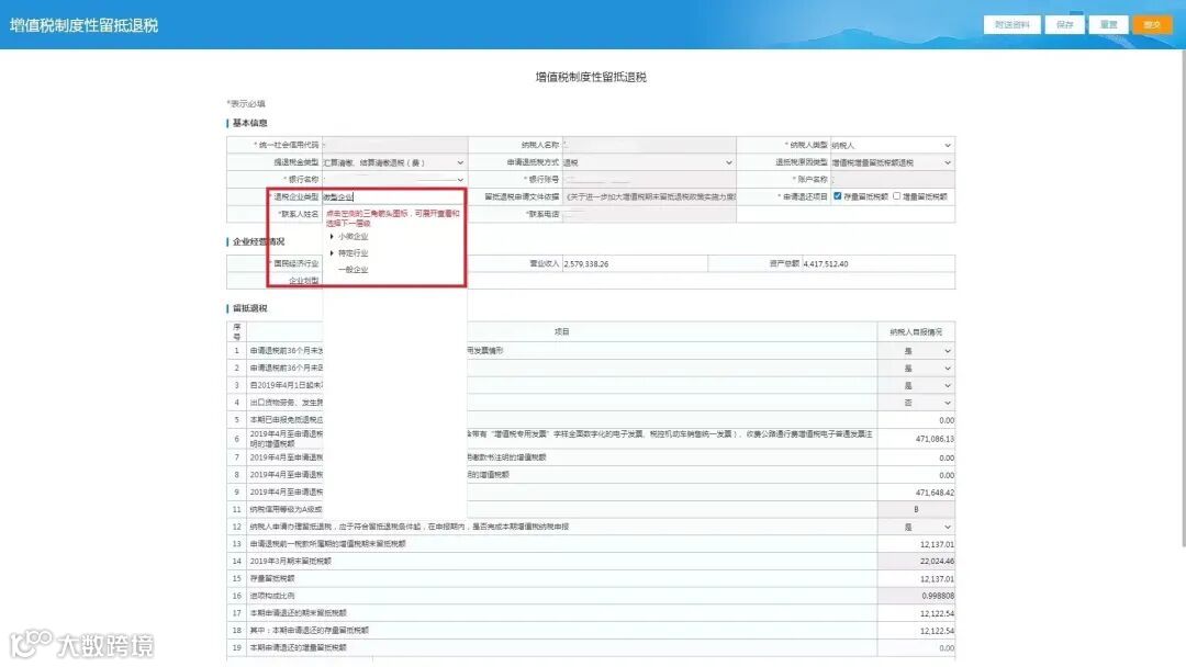 选择退税企业类型。