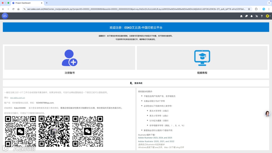 此页面不但可以注册试用账号,体验艾云流强大的印前、设计、项目管理等功能;也可以跳转艾云流的快速上手视频教程。在这个页面的下方,还有如何首次登录系统、修改密码的指引以及后台管理团队成员的微信二维码。更重要的是,必要的免费插件的下载链接也有。真是太周到了。
