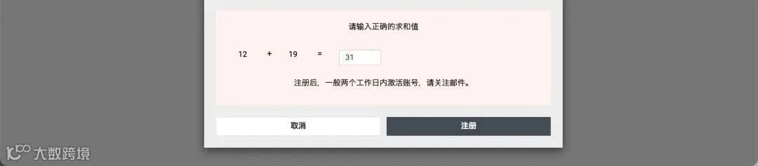 2.4 最后,输入一个简单的校验信息,点击注册按钮,提交即可。