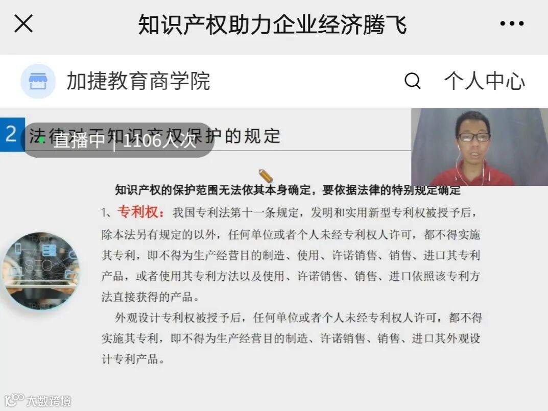 防疫“不见面”,服务“不减分”。本次分享会特邀财大大快发知识产权总经理罗相华,为大家线上讲解知识产权课程,从知识产权背景及概况、企业知识产权保护方向、惠企项目规划等方面展开详细介绍,罗相华讲师从事知识产权行业10余年,服务过众多大中型企业,在知识产权保护管理、惠企项目布局规划具有丰富的实战经验,具备全面、综合的知识产权管理能力。